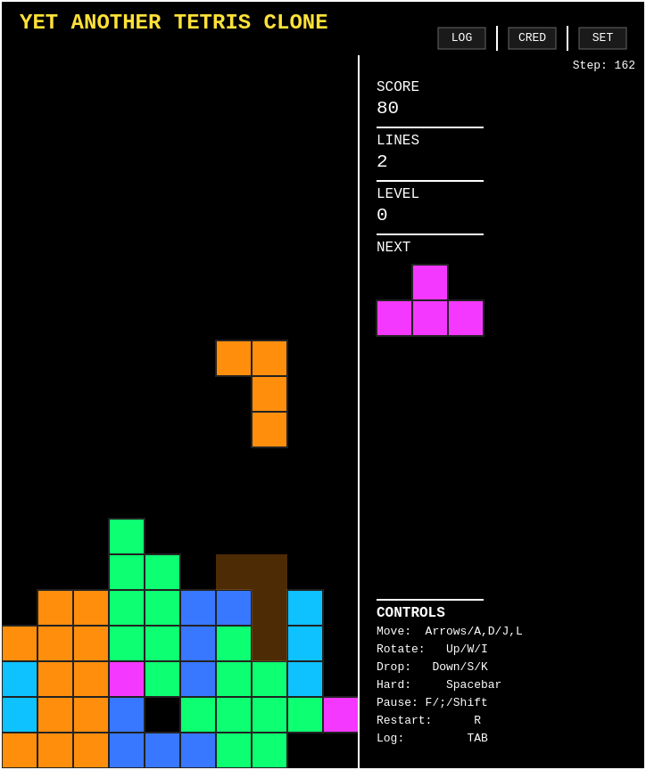 A clone of Tetris. Made in ONLY JS. There is pertty much no HTML in the file, all it does is reference the init script (init.js), everything else is handled by the modules. that includes things like DOM.