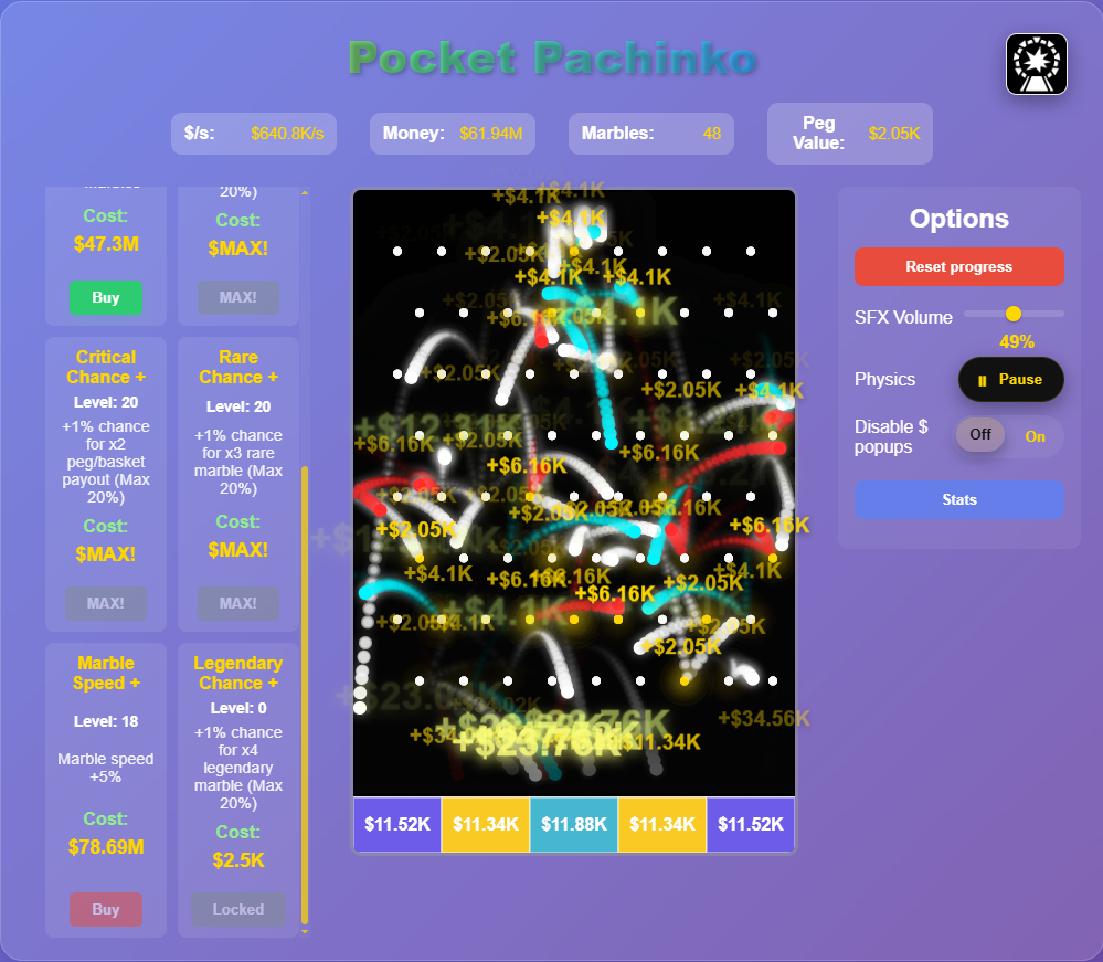Drop and clink-clack your way to riches! Starting from just one marble, work your way up to a colorful cascade of marble ASMR! Earn with every hit, ramp up your operation, and play infinitely by melting down your marbles into a single powerful Master Marble with the "Kinetic Core" Prestige mechanic!