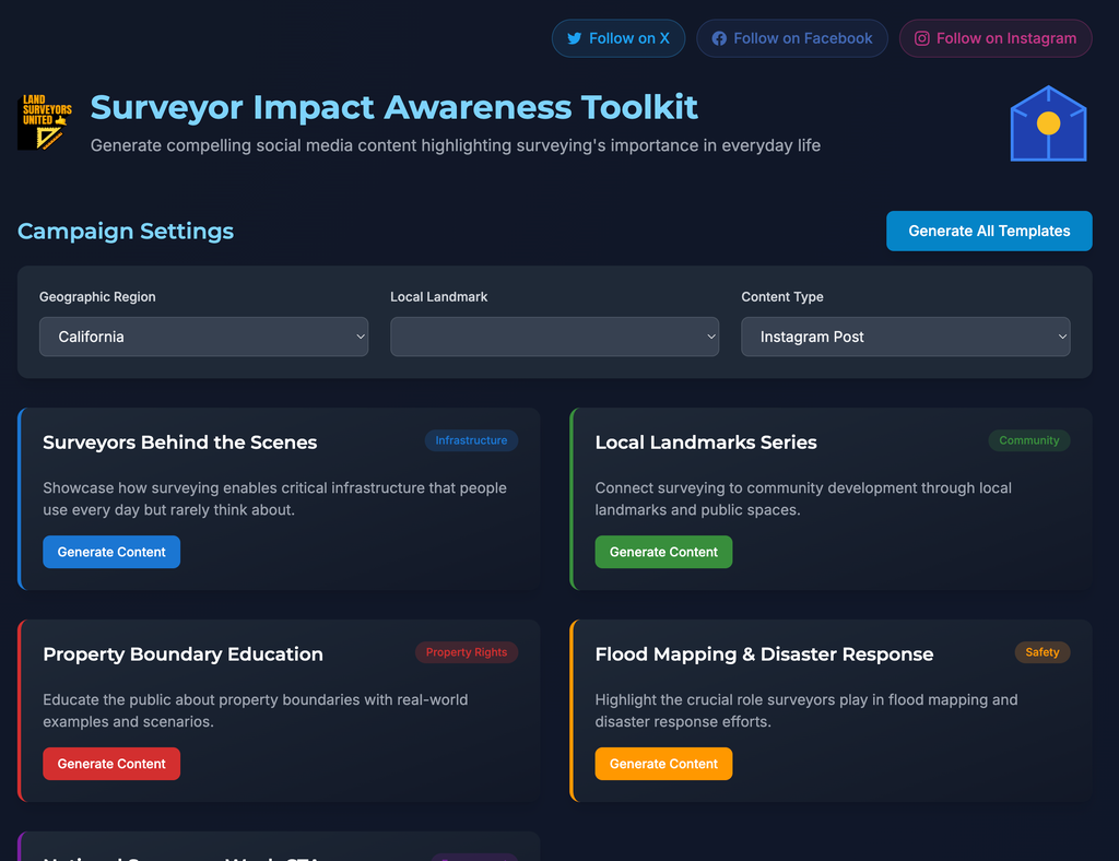 Generate compelling social media content highlighting surveying's importance in everyday life